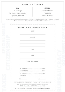 For a U.S. tax deductible, make check out to In His Image and notate that the donation is for Chaim V’Chessed.
