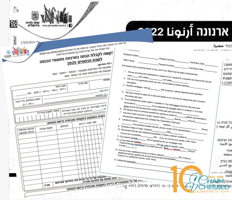Municipality representatives have told Chaim V’Chessed that any delay beyond the December 31 deadline will automatically cancel the discounts, leaving residents liable for the full Arnona payment.